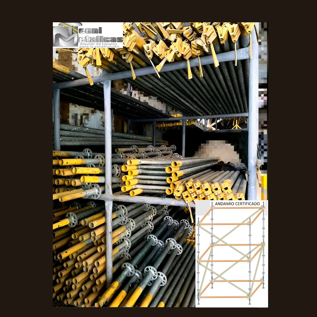 El andamio certificado o multidireccional permite modularse de diferentes maneras mediante la combinación de piezas para obtener diversas medidas tanto de largo, ancho y alto.
